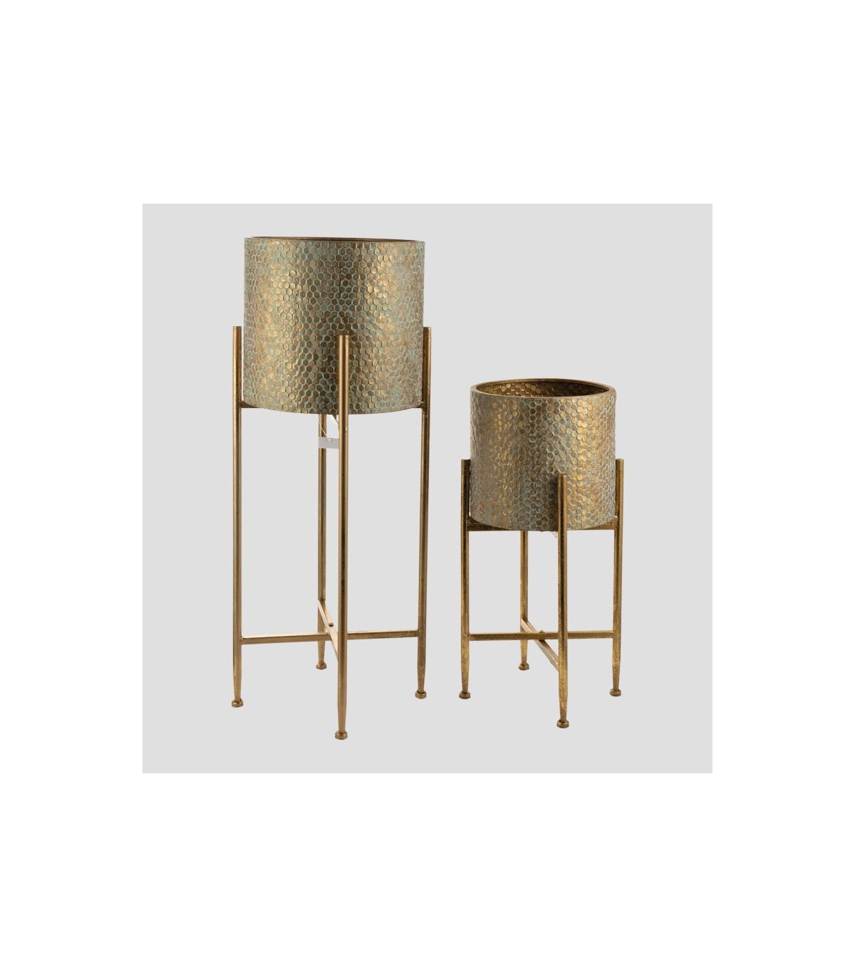 تسمح الحوامل الطويلة لنباتاتك بالبقاء في درجة حرارة الغرفة وهي مثالية للأرضيات ذات التدفئة الأرضية. تم تصميم كلتا المزهرين كمجموعة من اثنين ، مما يضفي تأثيرًا نحاسيًا خاصًا على ديكور منزلك ويعرض تصميم الماس المنسوج.